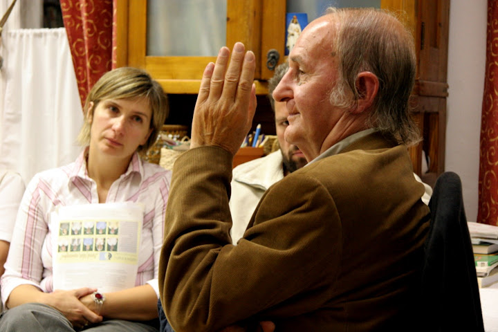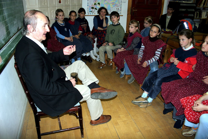 Meghívtuk magunkhoz Jóskát, akivel hosszú, sokszor éjszakákon át tartó beszélgetéseket folytattunk otthon a konyhaasztalnál. Atyaként figyelt ránk, tanítgatott bennünket. Így lett ő számunkra Molnár V. Józsefből az előadóból lassan-lassan Jóska, vagy Jóska bácsi. Az atyai öreg, nem csak a gyermekeink és a baráti társaságunk , hanem a megalapított Család Iskola apraja-nagyja számára is. Azóta jelen lévő kísérője iskolánk lelkületének. Nem csak előadásaival, tanácsaival, példázataival, hanem valóságos személyében is a hétköznapokon és ünnepeinken egyaránt.